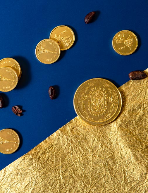 Les pièces et médailles en chocolat sont des accessoires originaux et savoureux indispensables pour vos team-buildings, ou vos cadeaux publicitaires. Faites frapper votre propre monnaie, ou vos médailles personnalisées pour vos événements internes ou externes et marquez les esprits. Nous apposons votre design sur l’enveloppe aluminium de vos pièces et médailles.