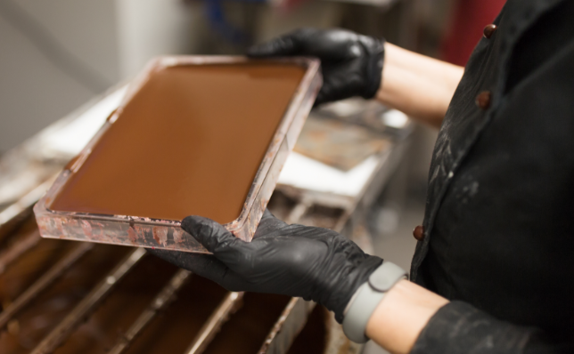 formes, couvertures (Chocolat Noir, au Lait, Bio, ou couvertures dediées…), emballage, design…pour aboutir aux produits finis, prêts à la vente !